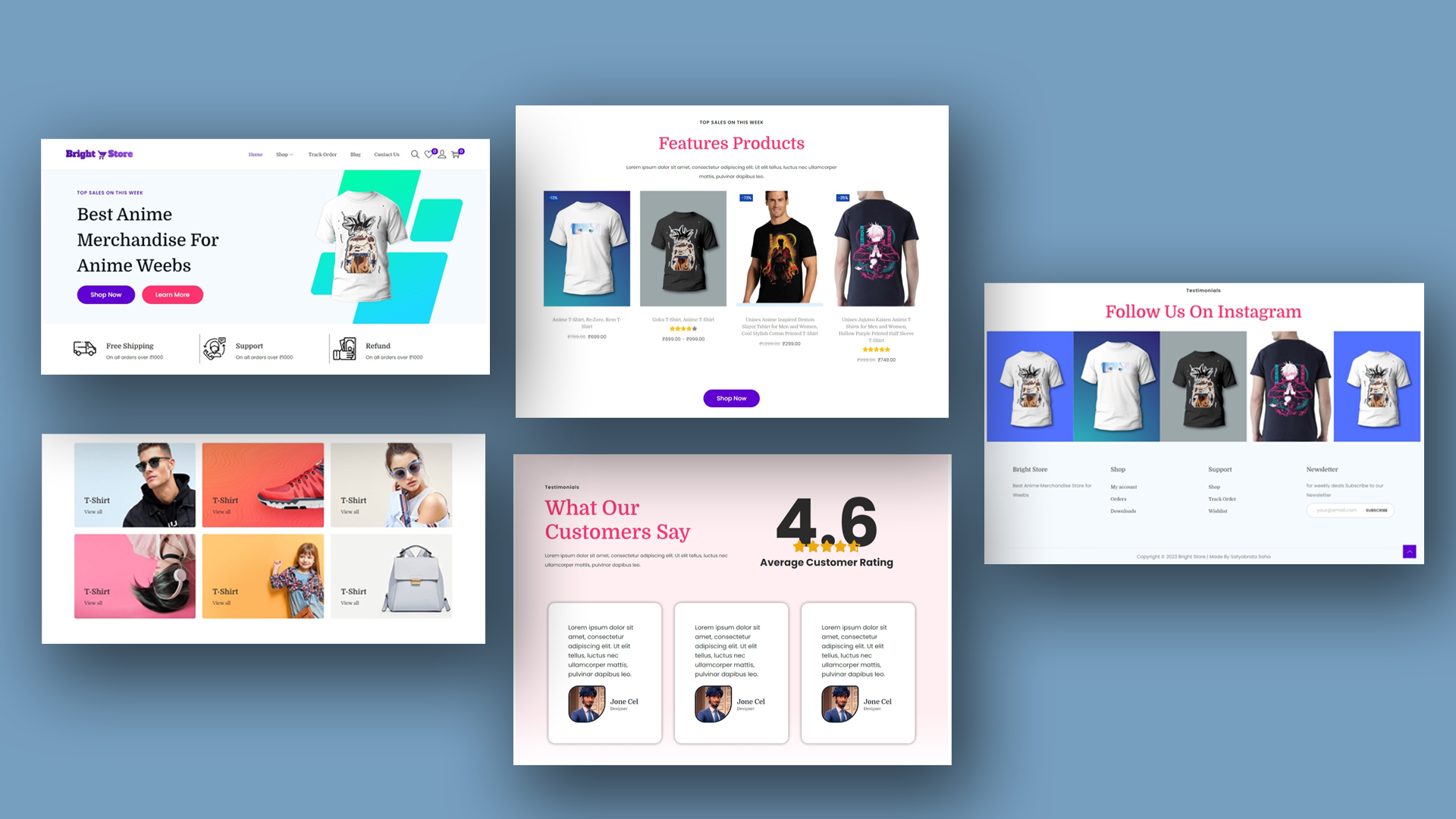 Bright Store is an E-Commerce website that can sell anime merchandise. This website has a sleek and modern look for a shopping website. It has every feature an e-commerce website needs like product adding, order fulfilment, review, account creation system, track order system and many more features.